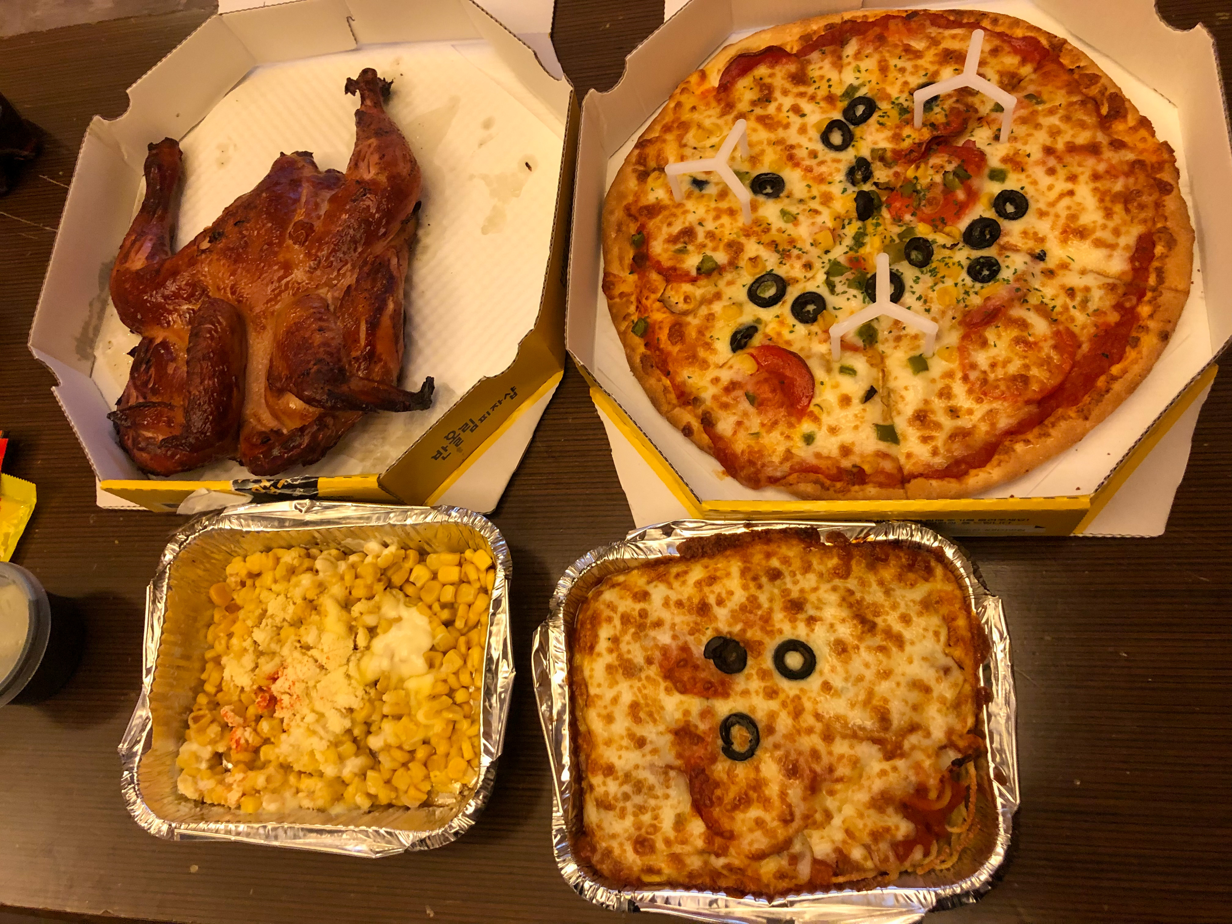 사이드 메뉴 라기엔 대충 옥수수에 재료를 하나씩 올리고