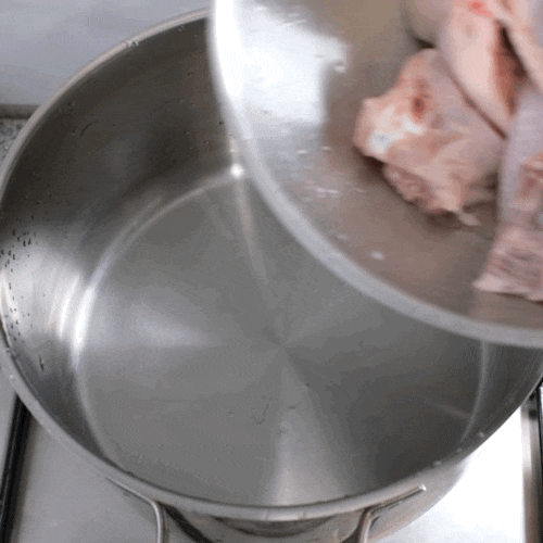 닭한마리를 넣은 냄비의 물이