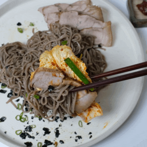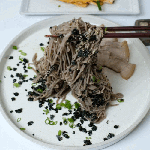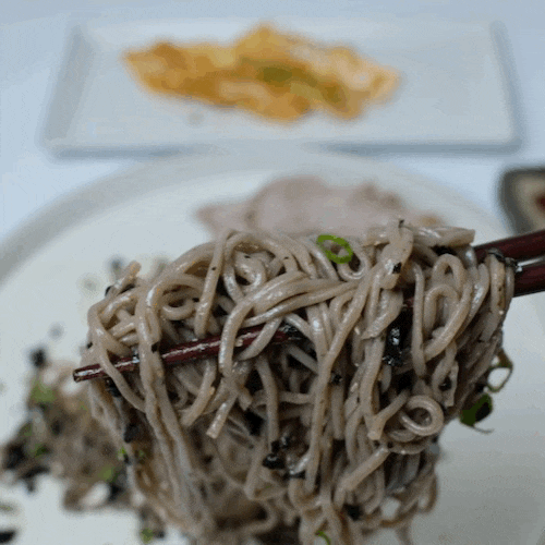 간장과 들기름에 버무려진 메밀면을