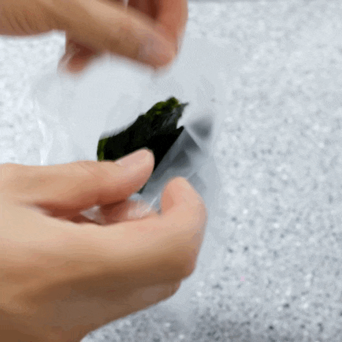 파래김을 봉지에 넣고
