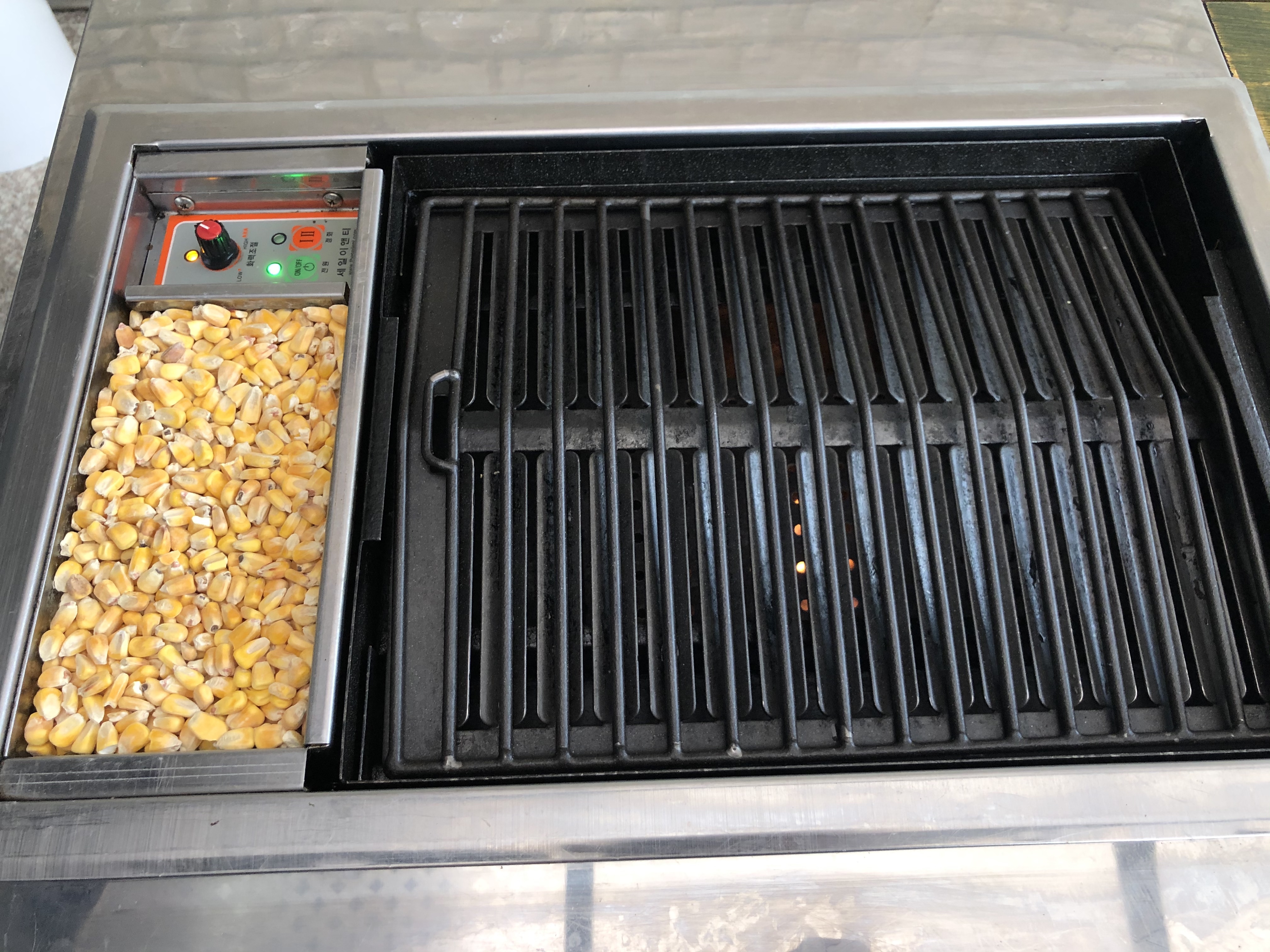 옥수수가 다 태워지면 옆에 있는 옥수수 알갱이가