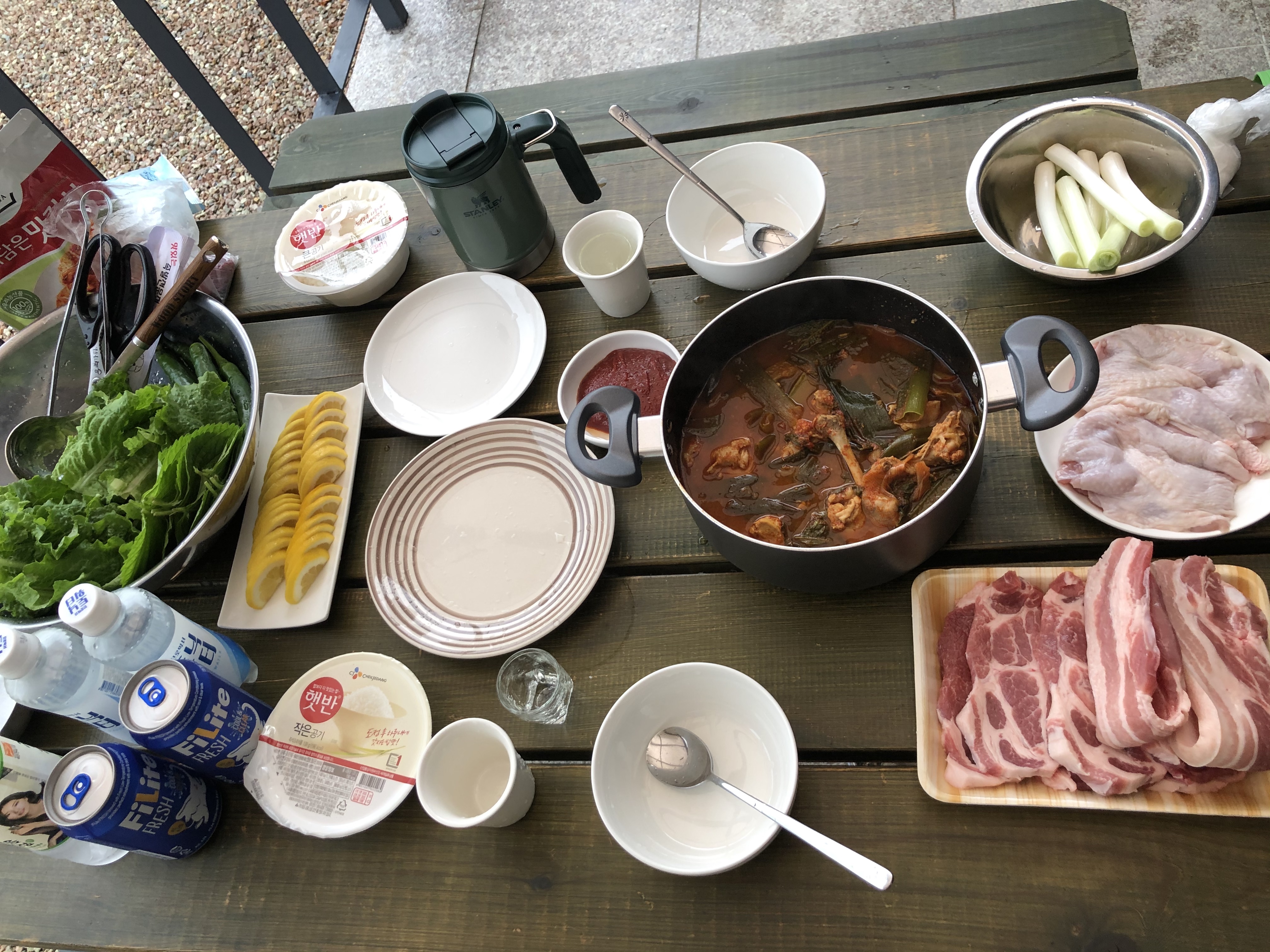 테라스에 한상을 차려봤다.