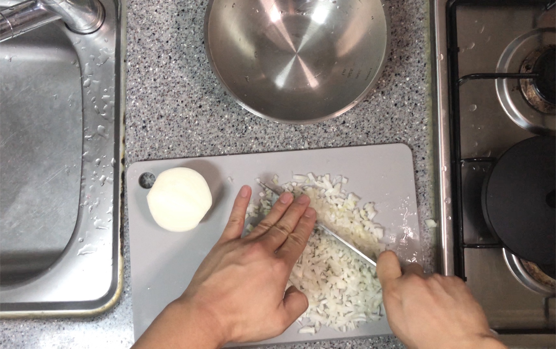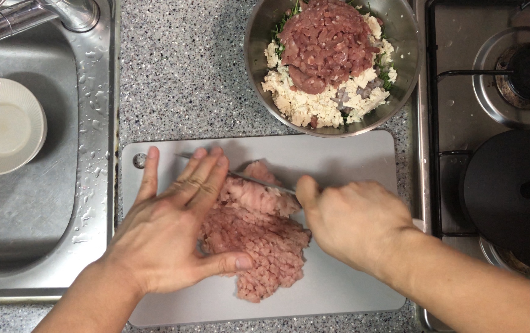 모든 재료를 사정없이 다져 넣고