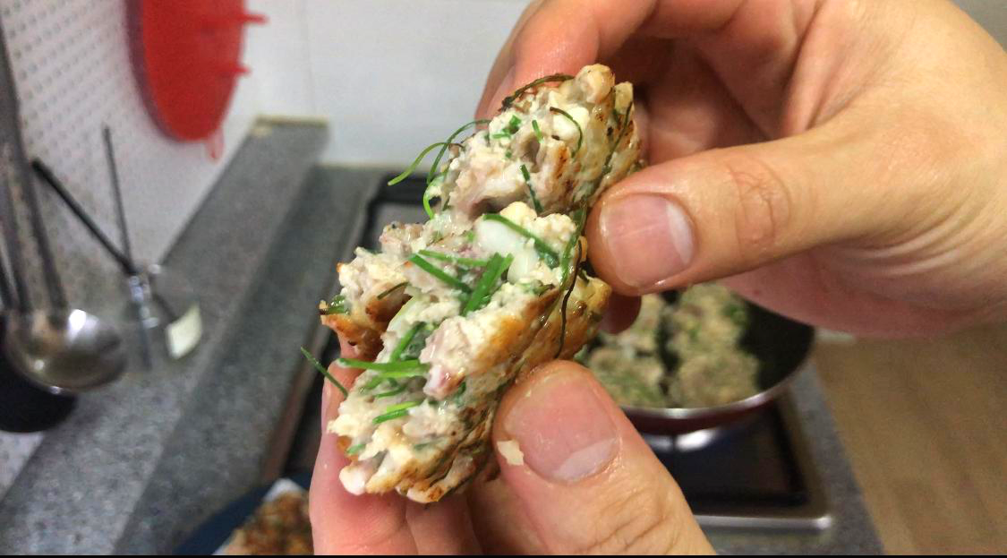 방금 프라이팬에서 건져낸 동그랑땡을