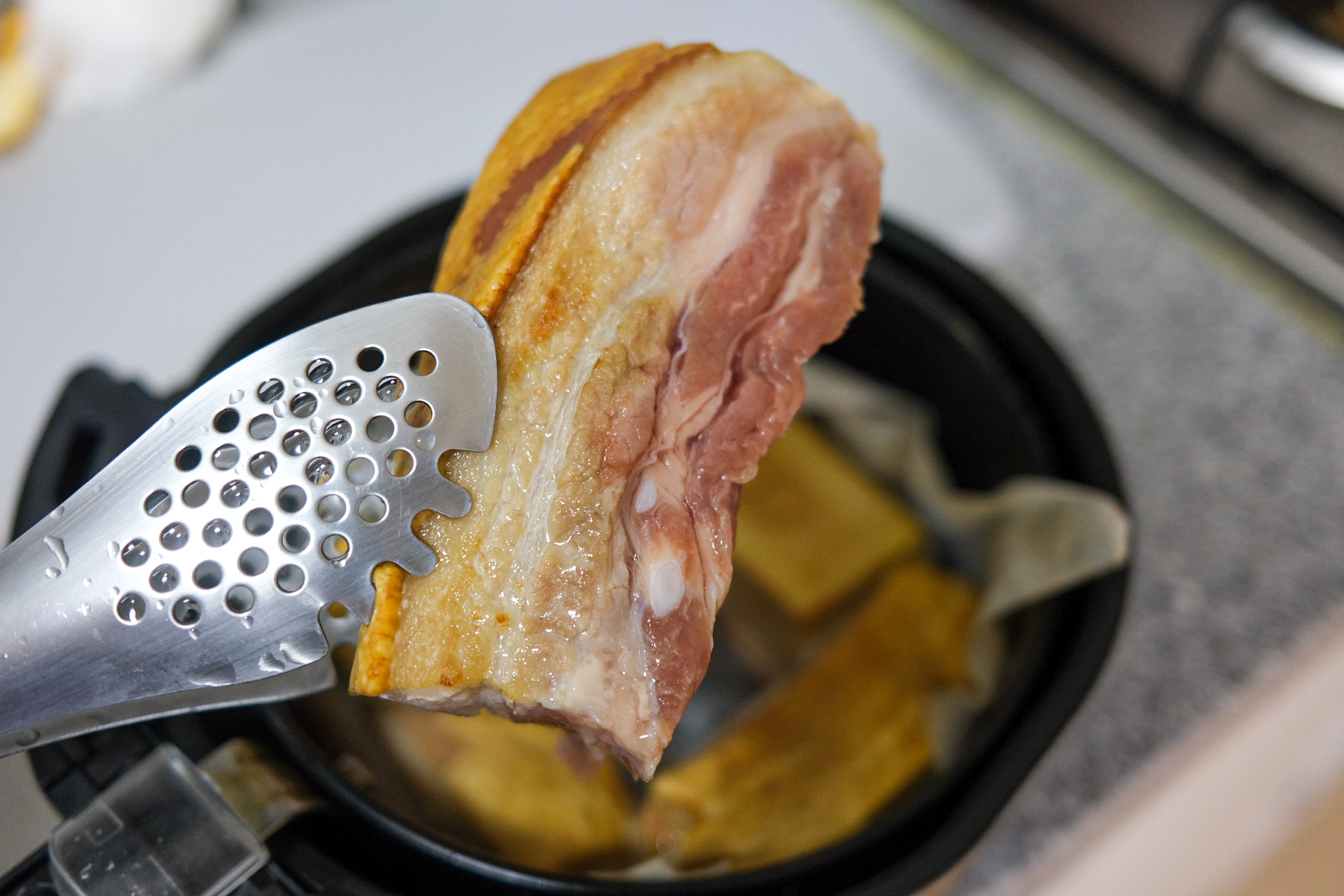 에어프라이어에 보쌈고기 껍데기 쪽을 구워주어